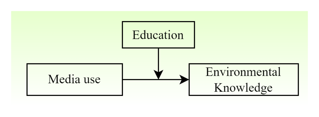 Sometimes it’s called interaction because the term is called interaction term. But you can also see it as education moderated the relationship between media use and environmental knowledge (1). You can also see it as media use moderated the relationship between education and environmental knowledge (2).